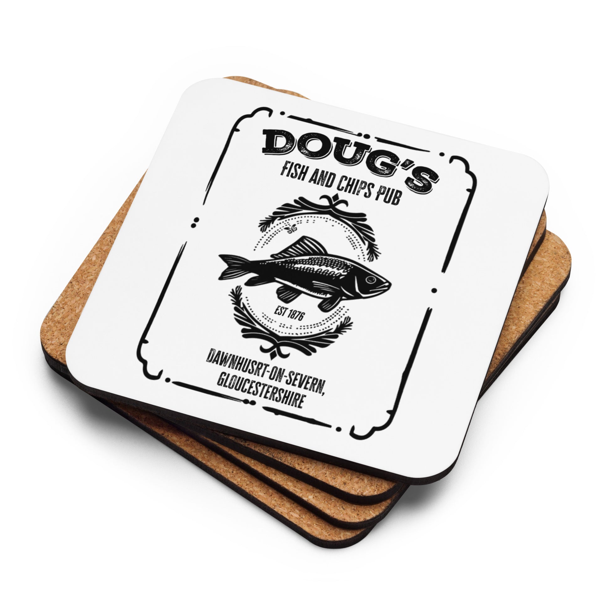 Doug's Fish and Chips Pub Cork-backed Coasters